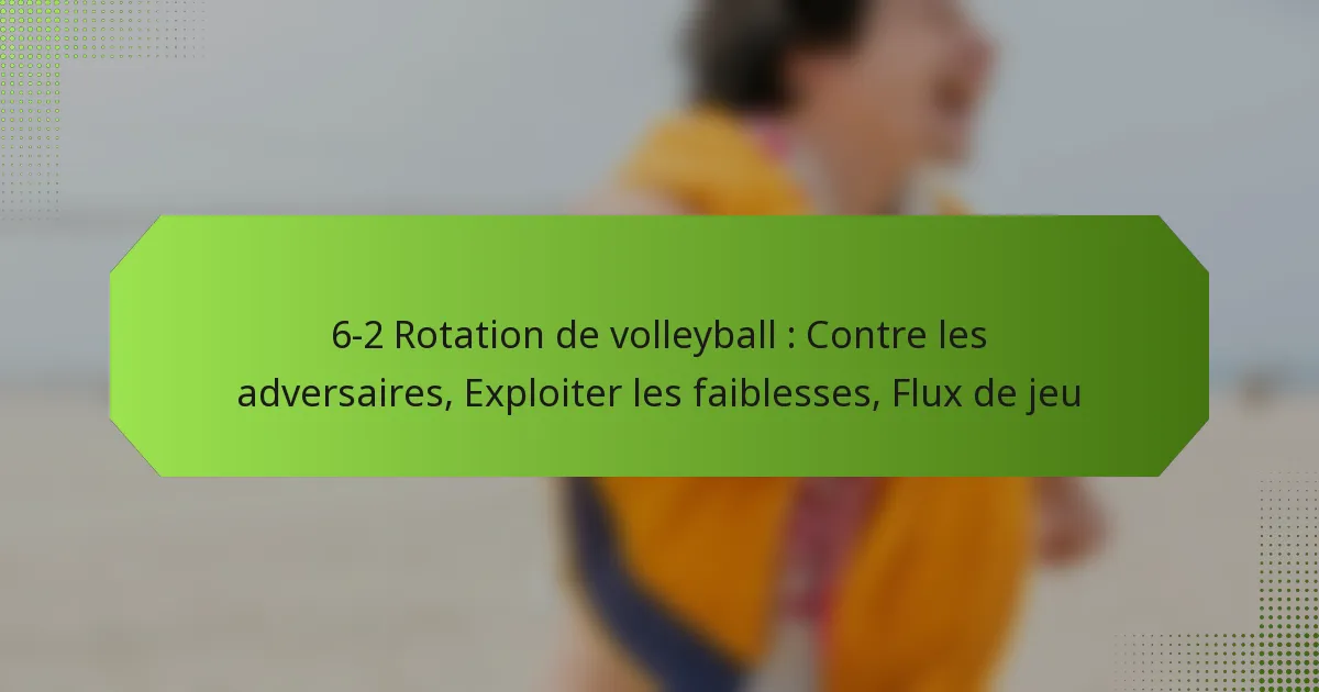 La rotation 6-2 en volleyball est un système qui utilise six joueurs dans deux positions de passeurs, permettant une stratégie offensive équilibrée. Cette rotation permet aux équipes de maintenir une forte attaque tout en s’assurant que tous les joueurs peuvent contribuer efficacement tant en attaque qu’en défense.