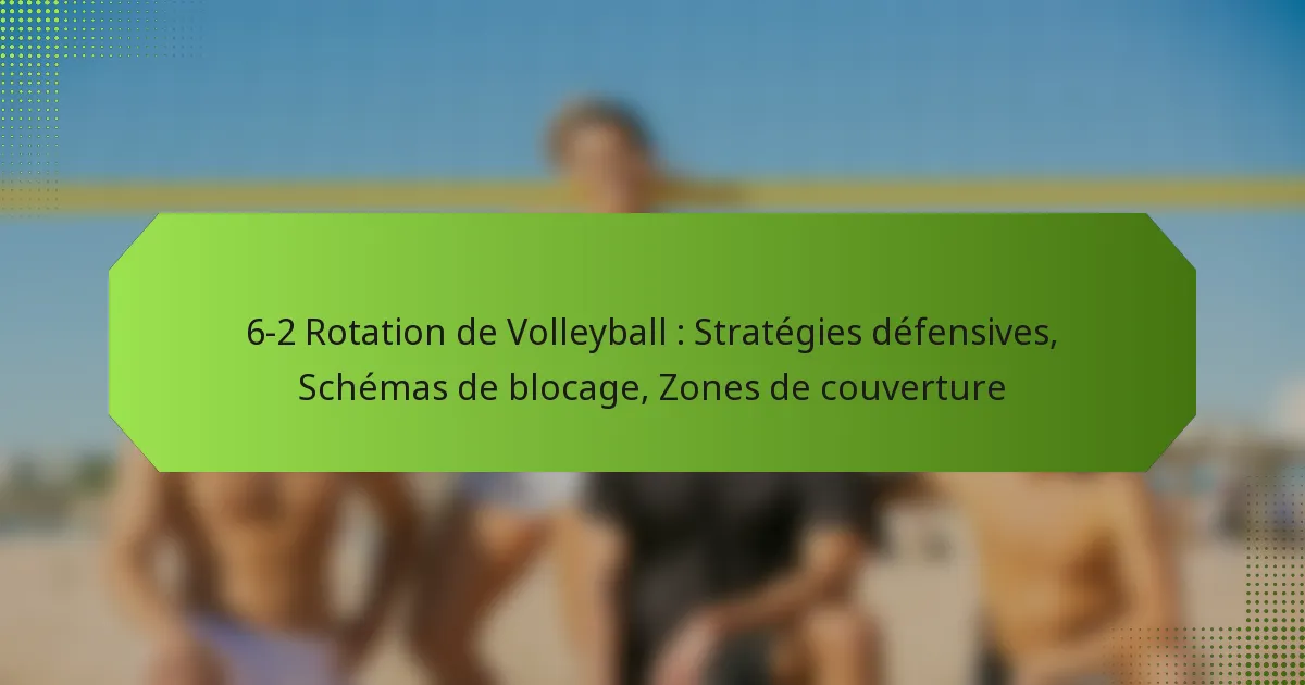 La rotation de volleyball 6-2 met l’accent sur de fortes stratégies défensives pour contrer efficacement les attaques des adversaires. Les éléments clés incluent le positionnement des joueurs, la communication et l’adaptation aux forces de l’équipe adverse, ce qui améliore collectivement les capacités défensives de l’équipe.