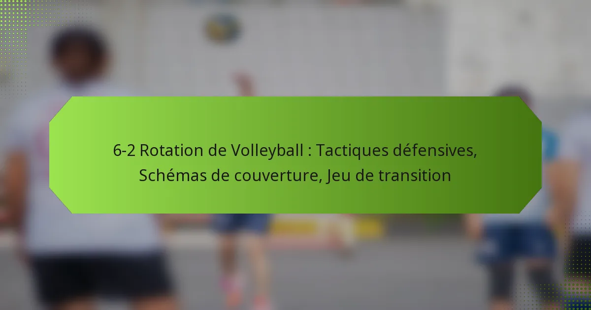 Mettre en œuvre des tactiques défensives dans la rotation 6-2 en volleyball implique de comprendre les responsabilités et le positionnement des joueurs pour contrer efficacement les attaques adverses. Ce système repose sur une combinaison de schémas de couverture stratégiques et de jeu de transition pour maintenir une défense solide tout au long du match.