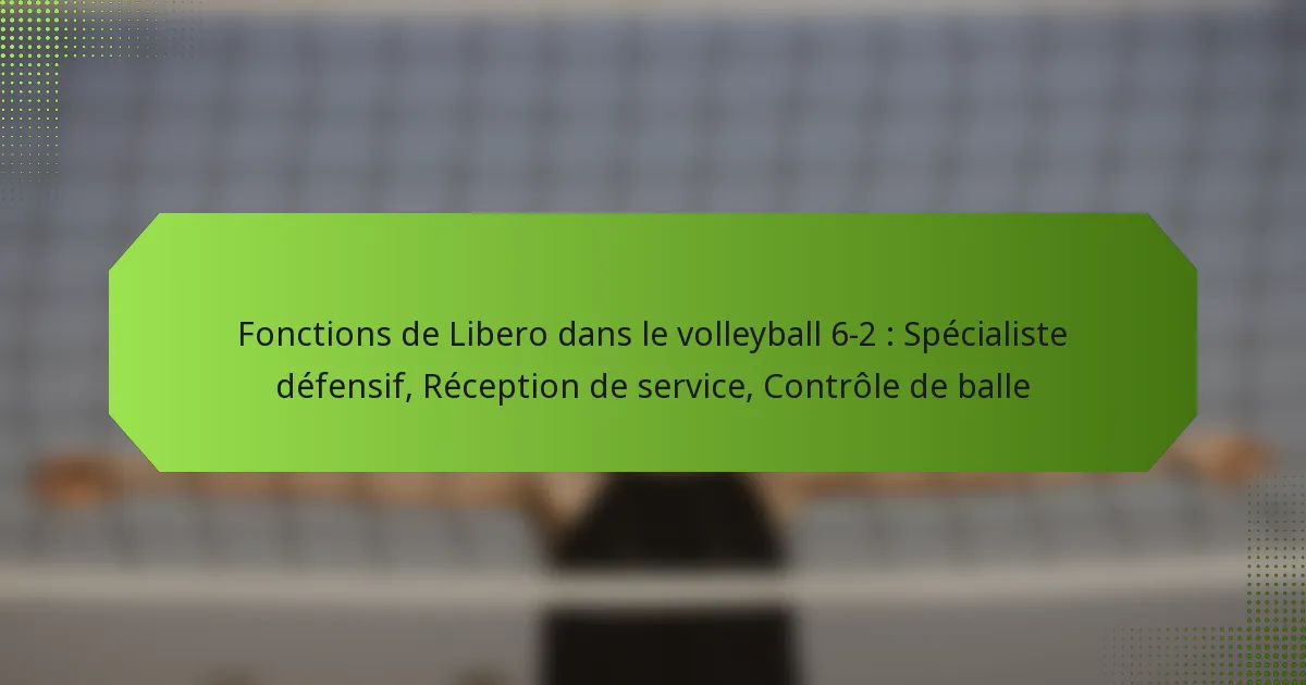 Fonctions de Libero dans le volleyball 6-2 : Spécialiste défensif, Réception de service, Contrôle de balle